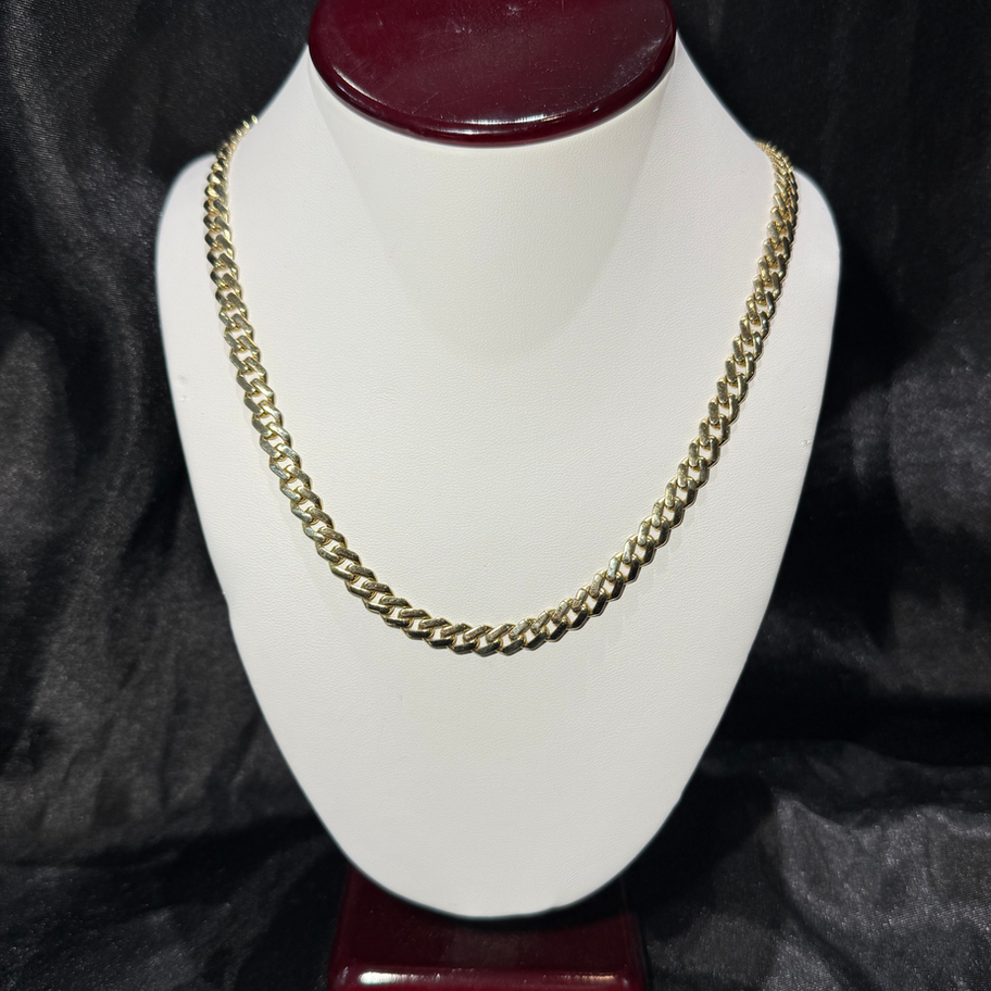 10k gold cuban link chain (light weight). Approx. 26” long & approx. 7mm wide. No returns or refunds.