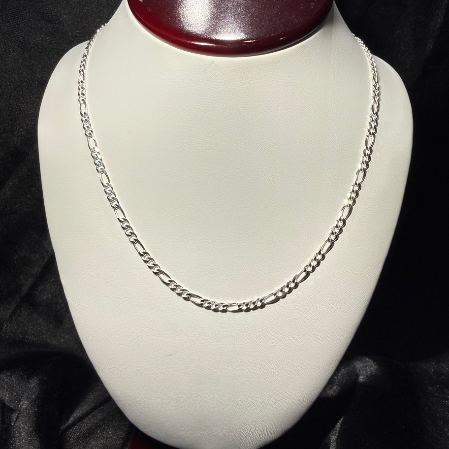 Sterling silver figaro chain, reversible: diamond cut on one side, plain on the other. 24” long. No returns or refunds.